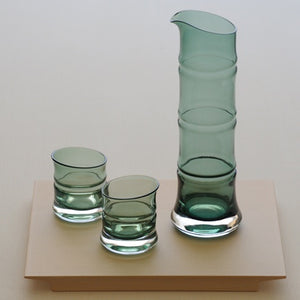 Hirota Glass Bamboo Sake Server and Glass set Green