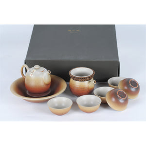 Lin's Ceramics Studio Hand Made Small Contentment Pot Set contains 9 pieces: one Small Contentment Pot(180ml), one Medium Serving Pot, one Teapot Stand and six Tea Tasting Cups(55ml). They are all made by ceramic.