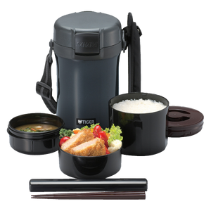 The sleek lunch box from Tiger comes in a stylish charcoal gray colour and holds up to 57 oz. (1.7L) of food in its compact rice, side dish and soup containers. The inner containers of this model are microwave safe, making the lunch box ideal carrier of hot meals that can be enjoyed away from home. The stainless steel vacuum insulated case helps retain the foods’ temperatures for hours after being filled, so that you don’t have to resort to eating only cold sandwiches when you’re on the go.
