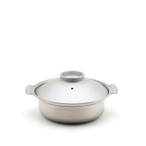 The outside of the pot is made of ferromagnetic stainless steel sandwiched between aluminum for excellent heat conduction and three layers of steel. The inside of the pot is 18-8 stainless steel, which is clean and has excellent heat retention properties. The inner material is corrosion-resistant, and the silver-colored pot has a mirror finish on the inside, which makes it easy to remove stuck-on food. A single piece of stainless steel is punched and finished by hand, making it easy to wash and keep clean. It is highly functional and can be used for a wide range of Japanese and Western dishes, including paella and other oven dishes. This is an excellent product developed with a factory specializing in stainless steel pots. It is compatible with both gas and induction heaters. This is a standard product that has been sold for 20 years.