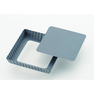 A baking mold that allows you to bake square tarts and pies. Fluororesin is applied twice to aluminum, which has high thermal conductivity, so it is easy to remove from the mold, does not stick easily, and is easy to wash. The bottomless type is very convenient to take out.